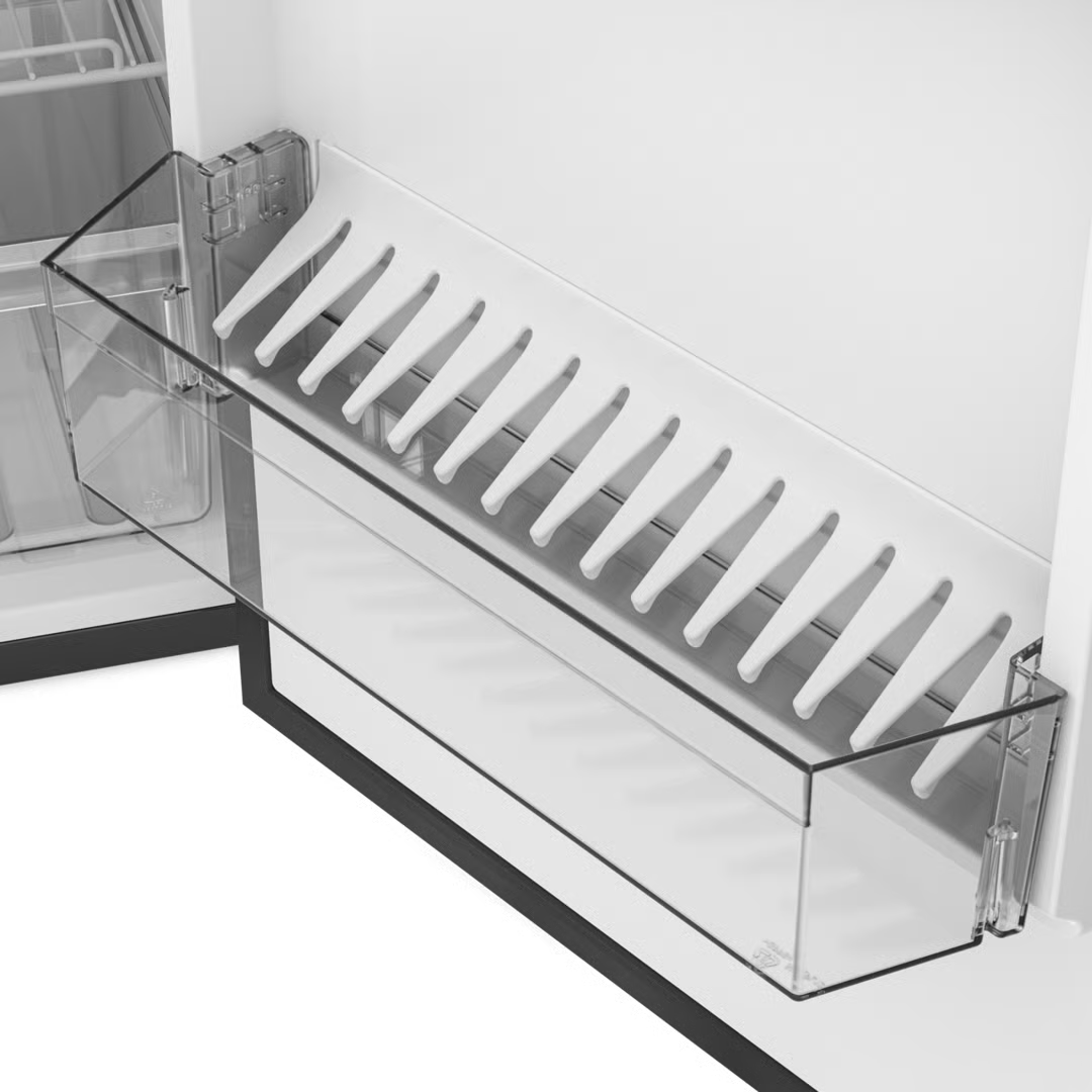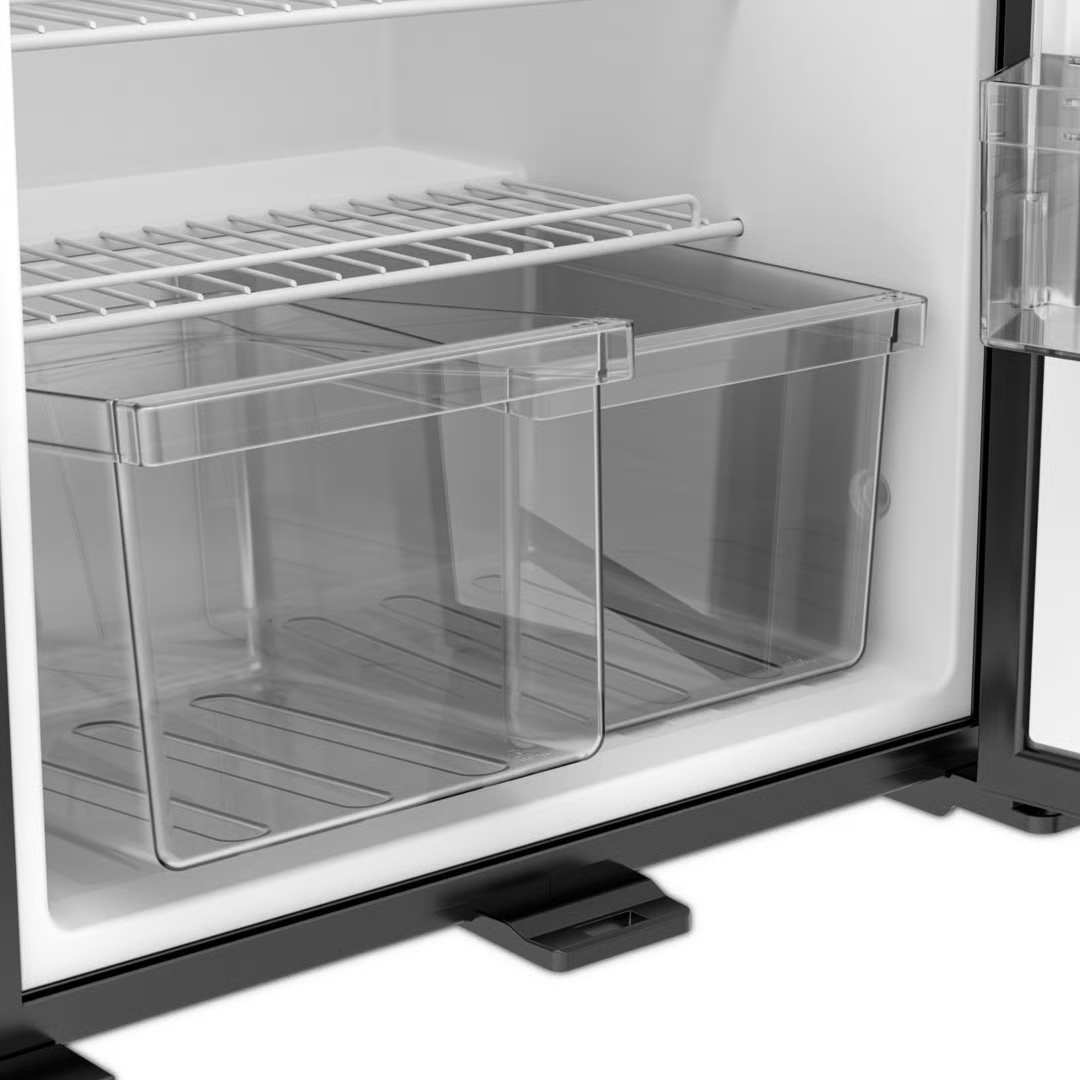Cu un volum total de aproximativ 90 litri, frigiderul funcționează în configurație Dual Zone și permite utilizarea ca frigider, congelator sau combinație frigider–congelator. Compartimentul de congelare este complet detașabil, permițând folosirea integrală a volumului pentru refrigerare sau conservare la o stea, în funcție de necesități.