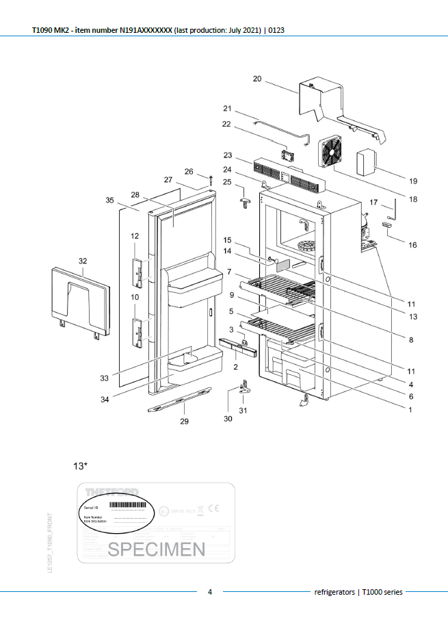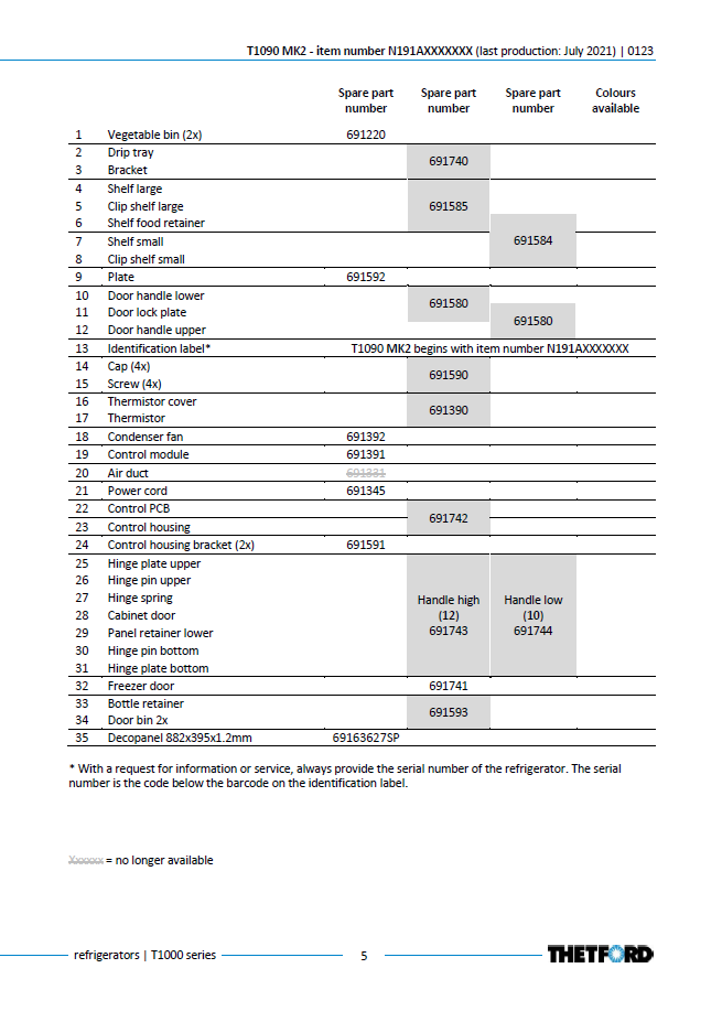 Această categorie este dedicată pieselor pentru frigiderul cu compresor Thetford T1090 MK2 din T1000 Series, identificat prin item number N191AXXXXXXX, model produs până în iulie 2021.